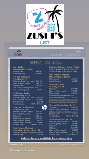 Sukkot & Simchat Torah 5786 – Oct. 6–15 at The Sephardic Center