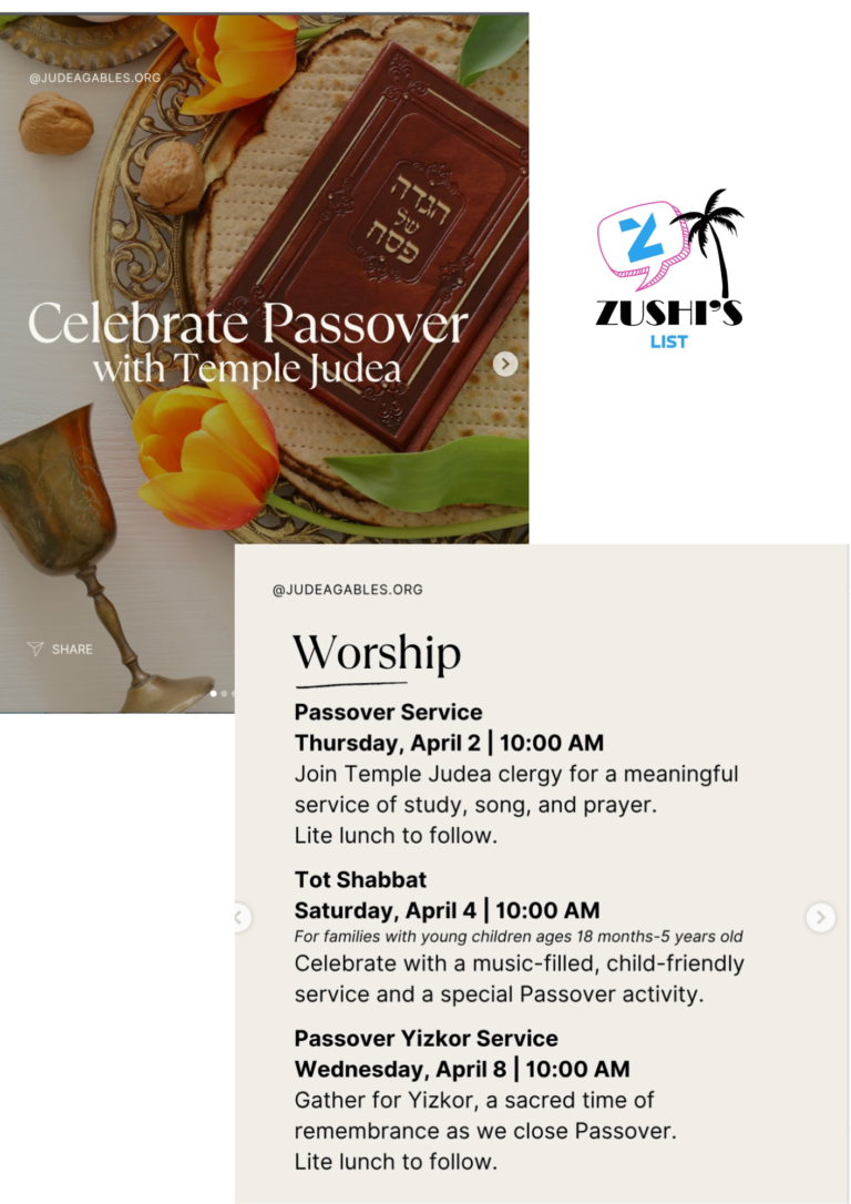 We can’t wait to celebrate Passover with you! We’ll see you Sunday from 3-5 p.m. at Temple Judea in Coral Gables. There’s still time to register! Take your seat at