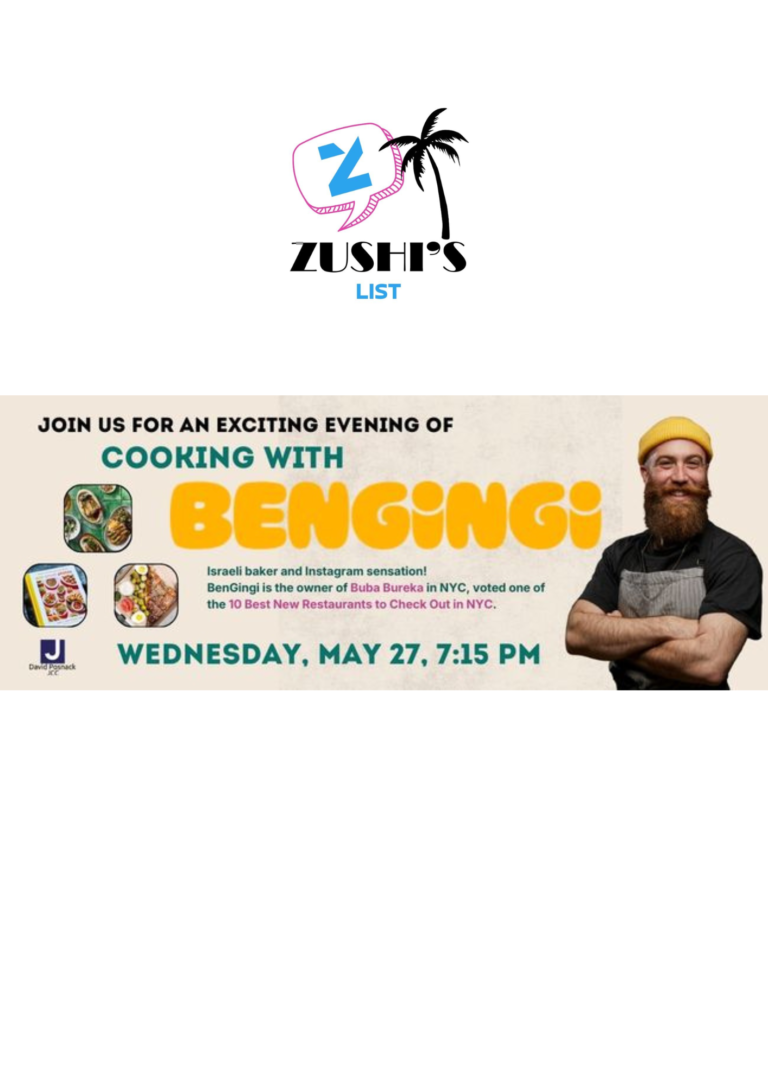 Cooking with Ben Gingi Join us for an evening with BenGingi, Israeli baker and Instagram sensation. Founder of NYC’s Buba Bureka and author of Eat Small Plates, he blends traditional