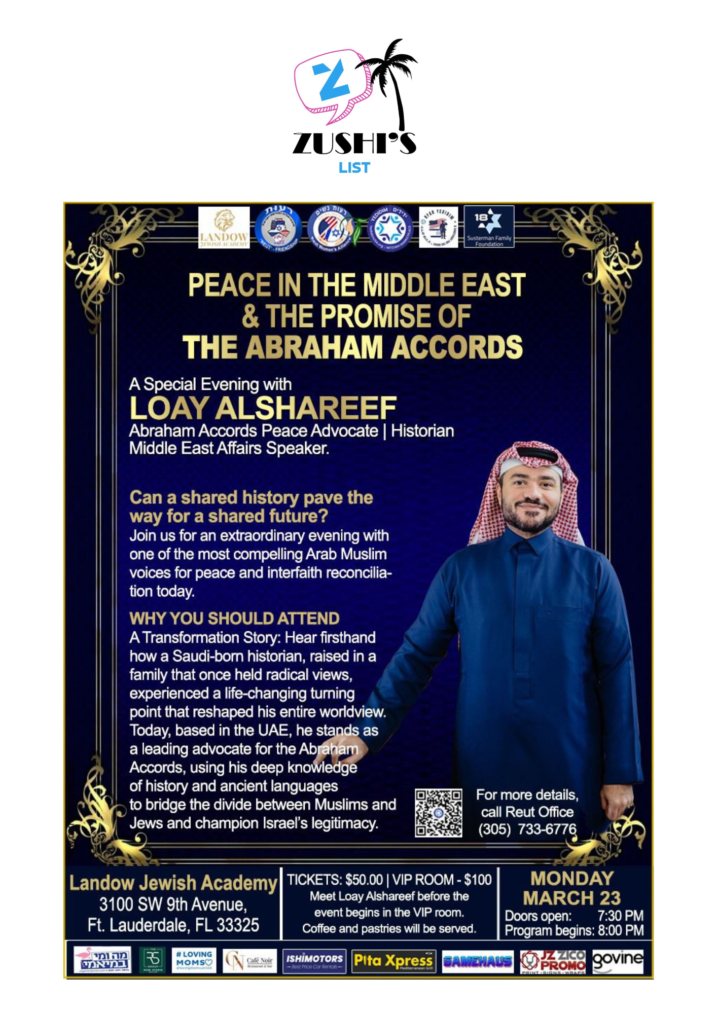 Landow Jewish Academy 3100 SW 9th Avenue, Ft. Lauderdale, Florida, United StatesPEACE IN THE MIDDLE EAST & THE PROMISE OF THE ABRAHAM ACCORDS A Special Evening with LOAY ALSHAREEF - Abraham […]