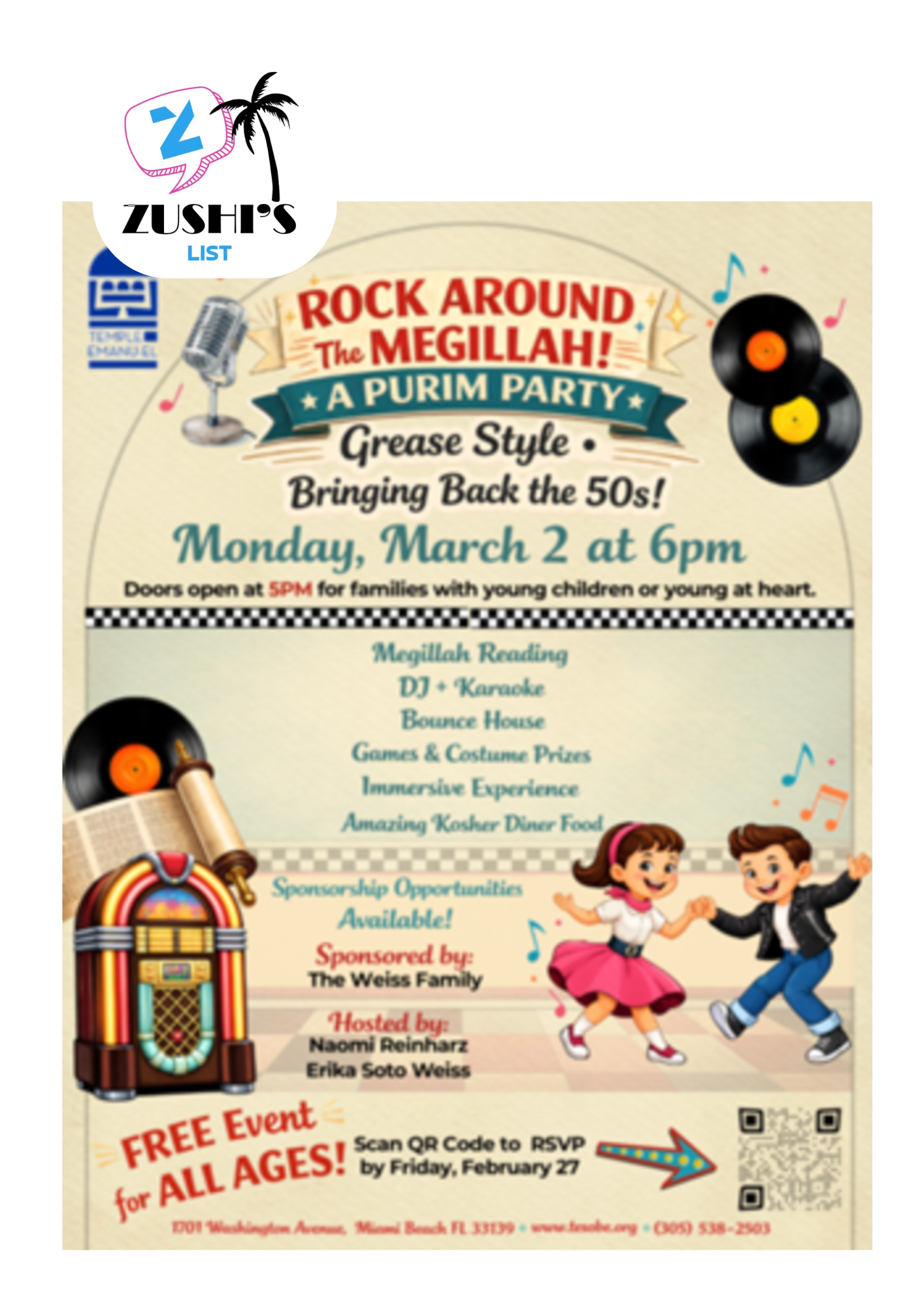 Temple Emanu-El 1701 Washington Avenue, Miami, United StatesYou are the One that I want...at our amazing Purim celebration featuring Megillah reading, DJ, karaoke, games, immersive experience, costume […]