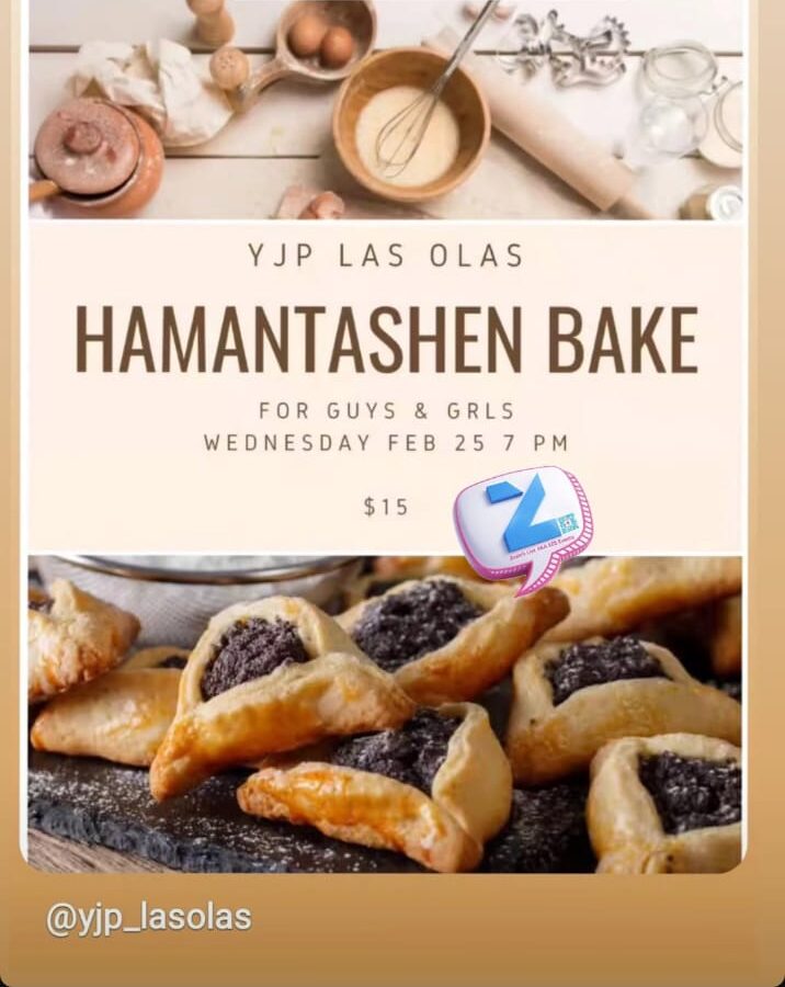 YJP LAS OLAS HAMANTASHEN BAKE FOR GUYS & GRLS WEDNESDAY FEB 25 7 PM $15