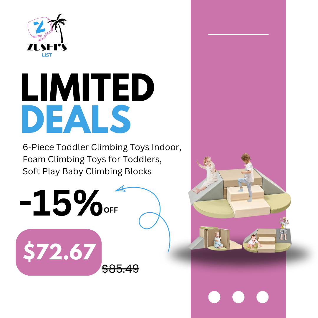 6-Piece Toddler Climbing Toys Indoor, Foam Climbing Toys for Toddlers, Soft Play Baby Climbing Blocks for Crawling and Sliding, Safe Climbing Play Set Indoor Gym Equipment for Toddler1-3, Infant, Baby