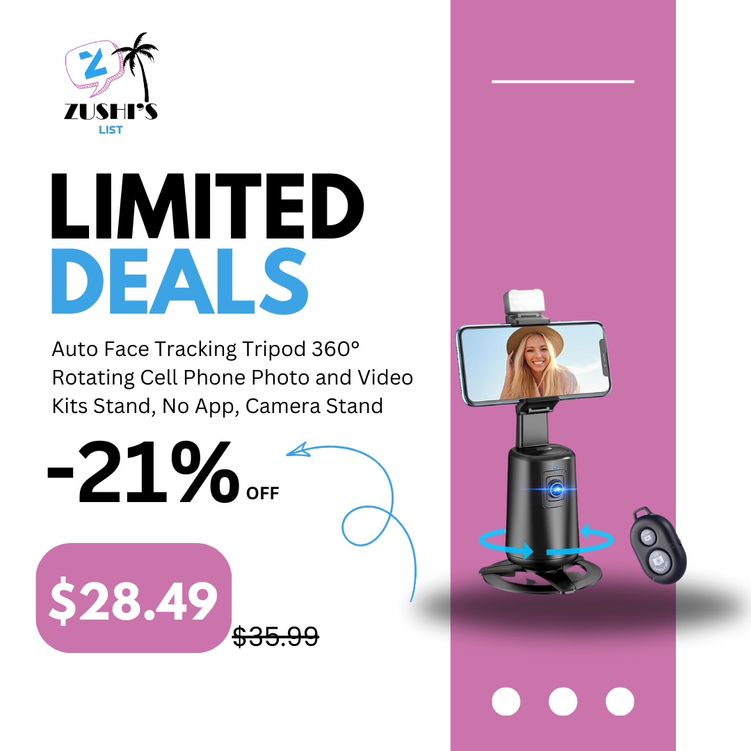 Auto Face Tracking Tripod 360° Rotating Cell Phone Photo and Video Kits Stand, No App, Camera Stand with Remote and Gesture Control, Rechargeable Smart Shooting Stand for Live Recording Tiktok(Black)