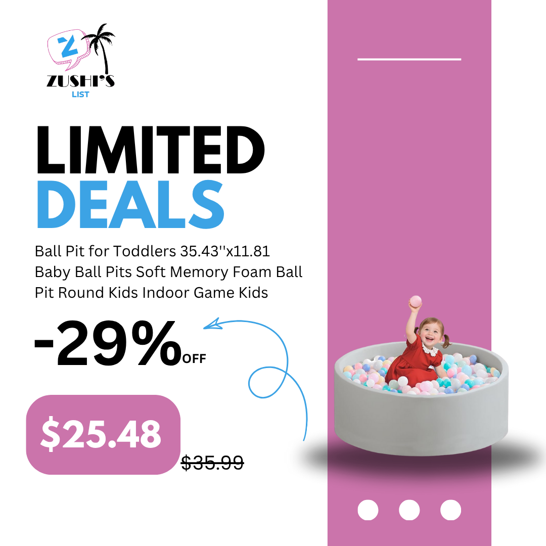 Ball Pit for Toddlers 35.43”x11.81 Baby Ball Pits Soft Memory Foam Ball Pit Round Kids Ball Pit Indoor Game Kids Play Ball Pool Ideal Gift for Girls and Boys (Grey, NO Balls)