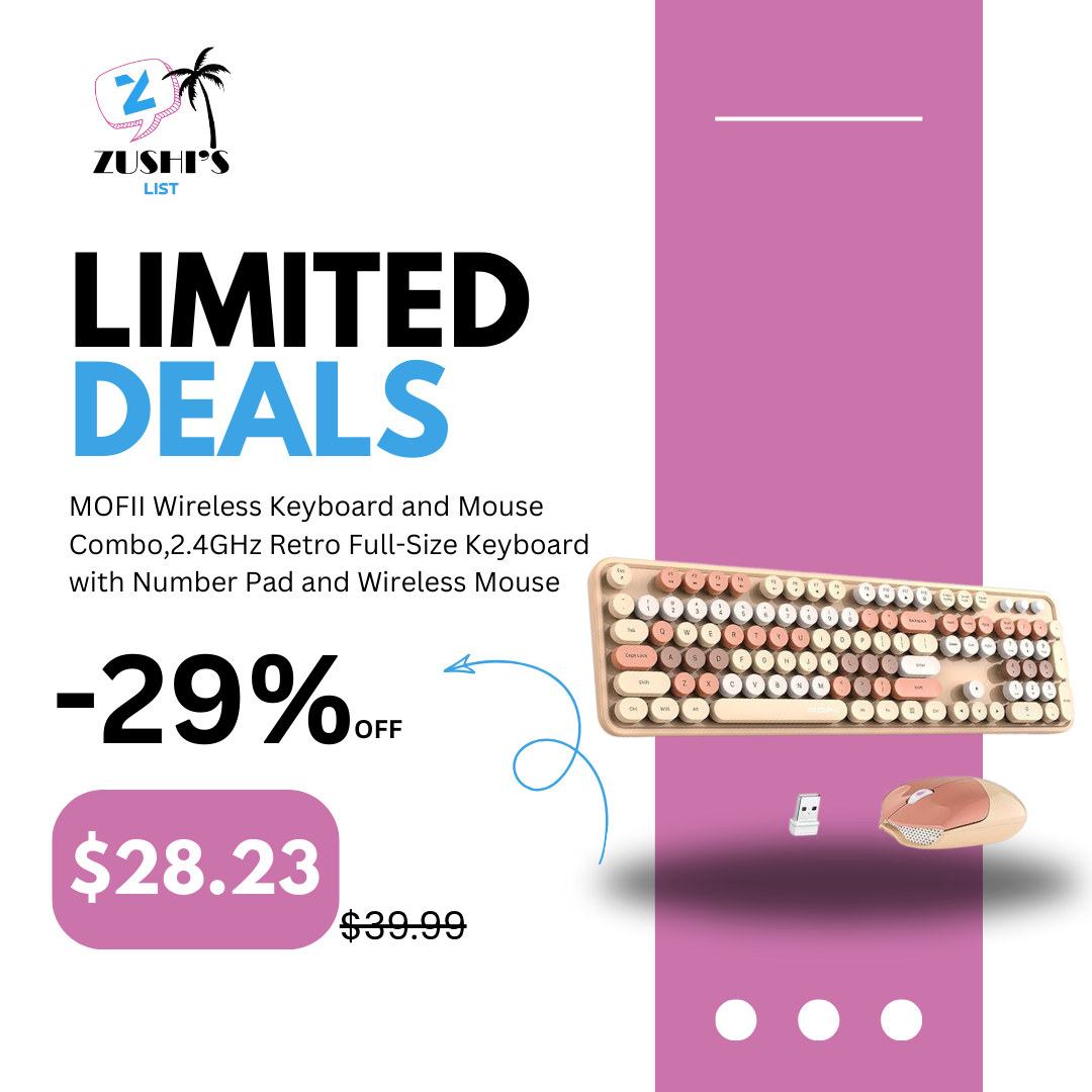 MOFII Wireless Keyboard and Mouse Combo,2.4GHz Retro Full-Size Keyboard with Number Pad and Cute Wireless Mouse for Computer PC Desktops Laptop WindowsxP/7/8/10(Milk Tea Colorful-B)