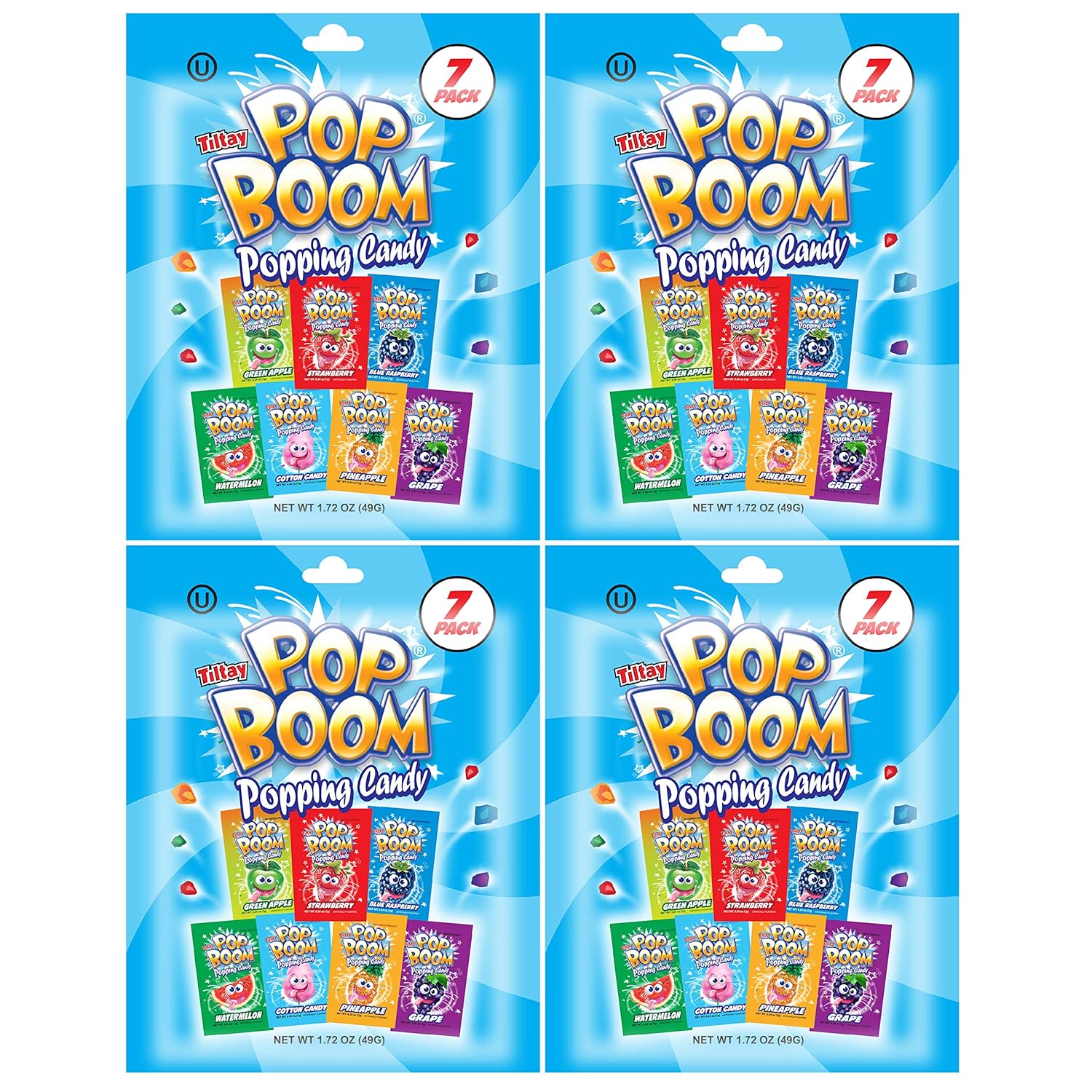 Tiltay Pop Boom Popping Candy – 7 Flavor Assortment, Strawberry, Green Apple, Blue Raspberry, Watermelon, Grape, Pineapple, Cotton Candy – 4 x 7-pack