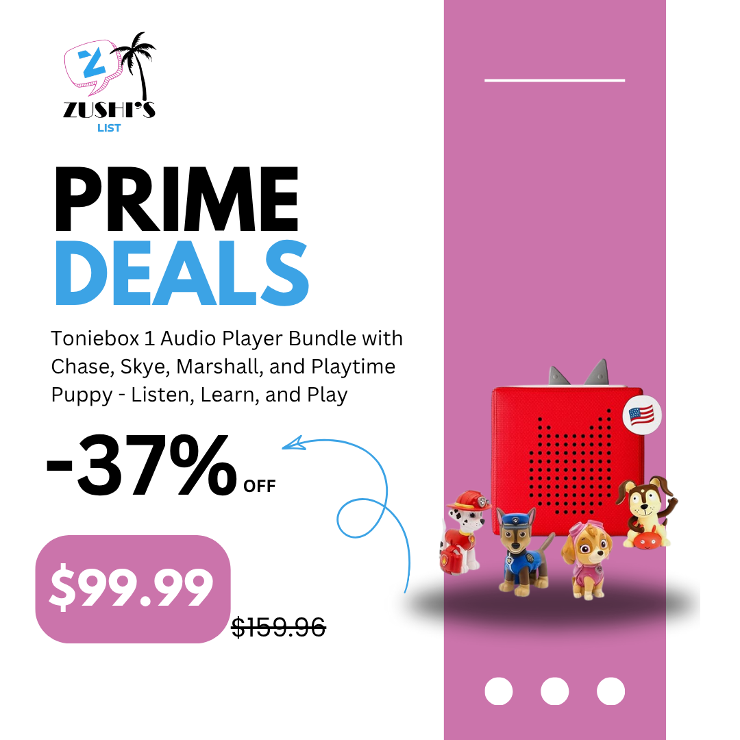 Toniebox 1 Audio Player Bundle with Chase, Skye, Marshall, and Playtime Puppy – Listen, Learn, and Play with One Huggable Little Box – Red