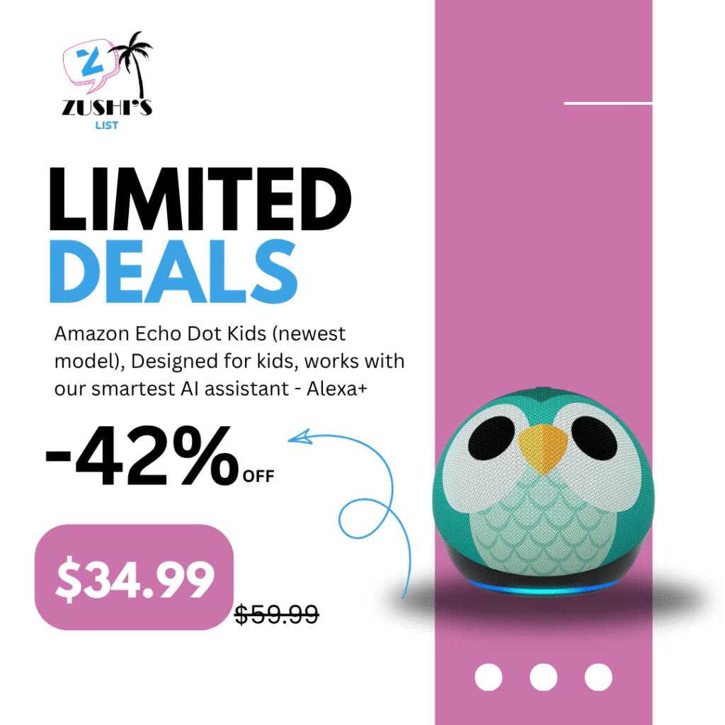 Amazon Echo Dot Kids (newest model), Designed for kids, works with our smartest AI assistant – Alexa+, with parental controls, Includes 1 Year of Amazon Kids+, Owl