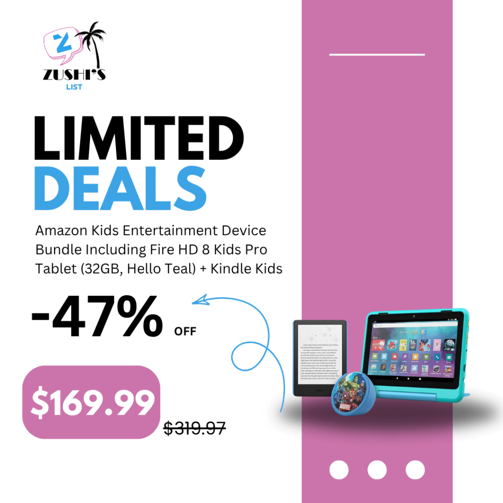 Amazon Kids Entertainment Device Bundle Including Fire HD 8 Kids Pro Tablet (32GB, Hello Teal) + Kindle Kids (16GB, Space Whale) + Echo Dot Kids (Avengers)