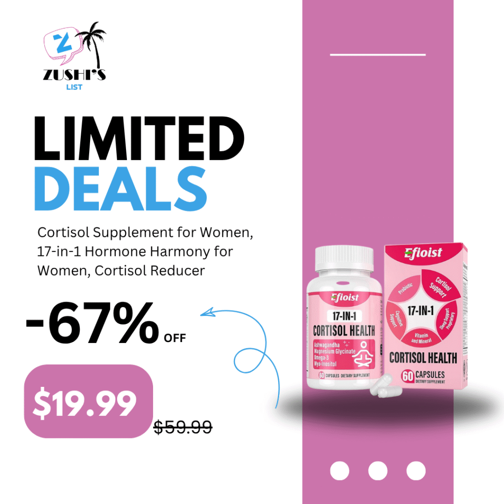 Cortisol Supplement for Women, 17-in-1 Hormone Harmony for Women, Cortisol Reducer with Ashwagandha, Rhodiola Rosea, Magnesium Glycinate, Omega-3, for Mood, Focus, Sleep Support, 60 Capsules