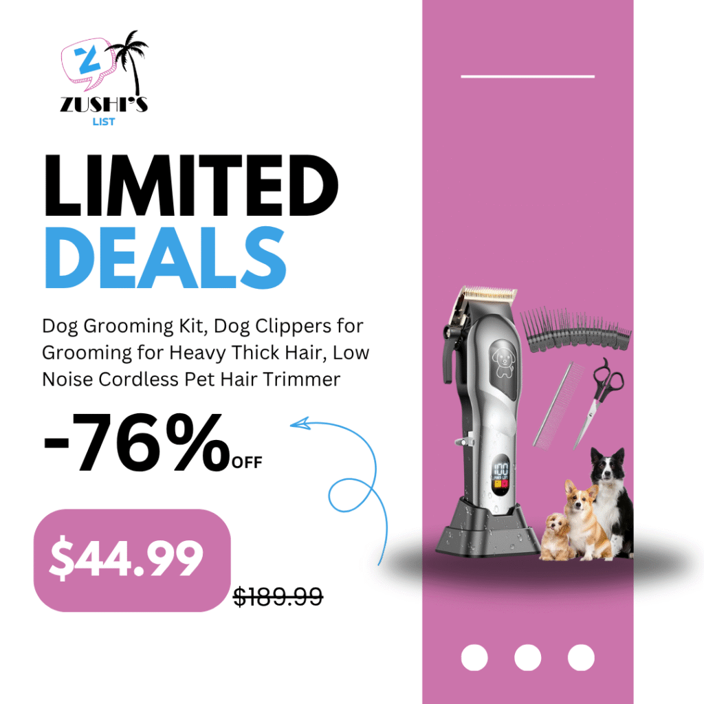 Dog Grooming Kit, Dog Clippers for Grooming for Heavy Thick Hair, Low Noise Cordless Pet Hair Trimmer with Stainless Steel Blade, Professional Rechargeable Hair Trimmer for Dogs and Cats