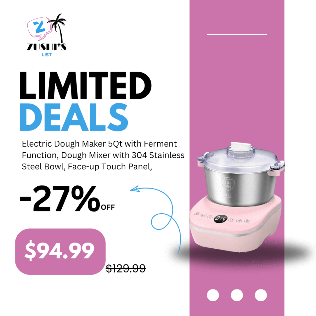 Electric Dough Maker 5Qt with Ferment Function, Dough Mixer with 304 Stainless Steel Bowl, Face-up Touch Panel, for Bread & Pizza