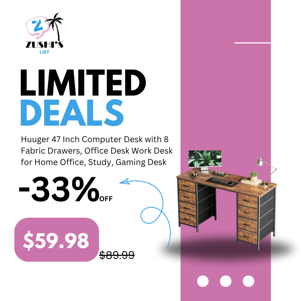 Huuger 47 Inch Computer Desk with 8 Fabric Drawers, Office Desk Work Desk for Home Office, Study, Gaming Desk with Drawers, Large Storage, Rustic Brown