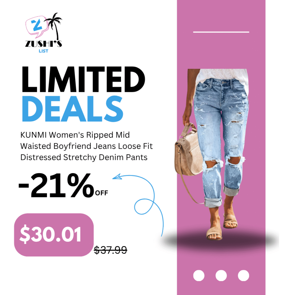 KUNMI Women’s Ripped Mid Waisted Boyfriend Jeans Loose Fit Distressed Stretchy Denim Pants