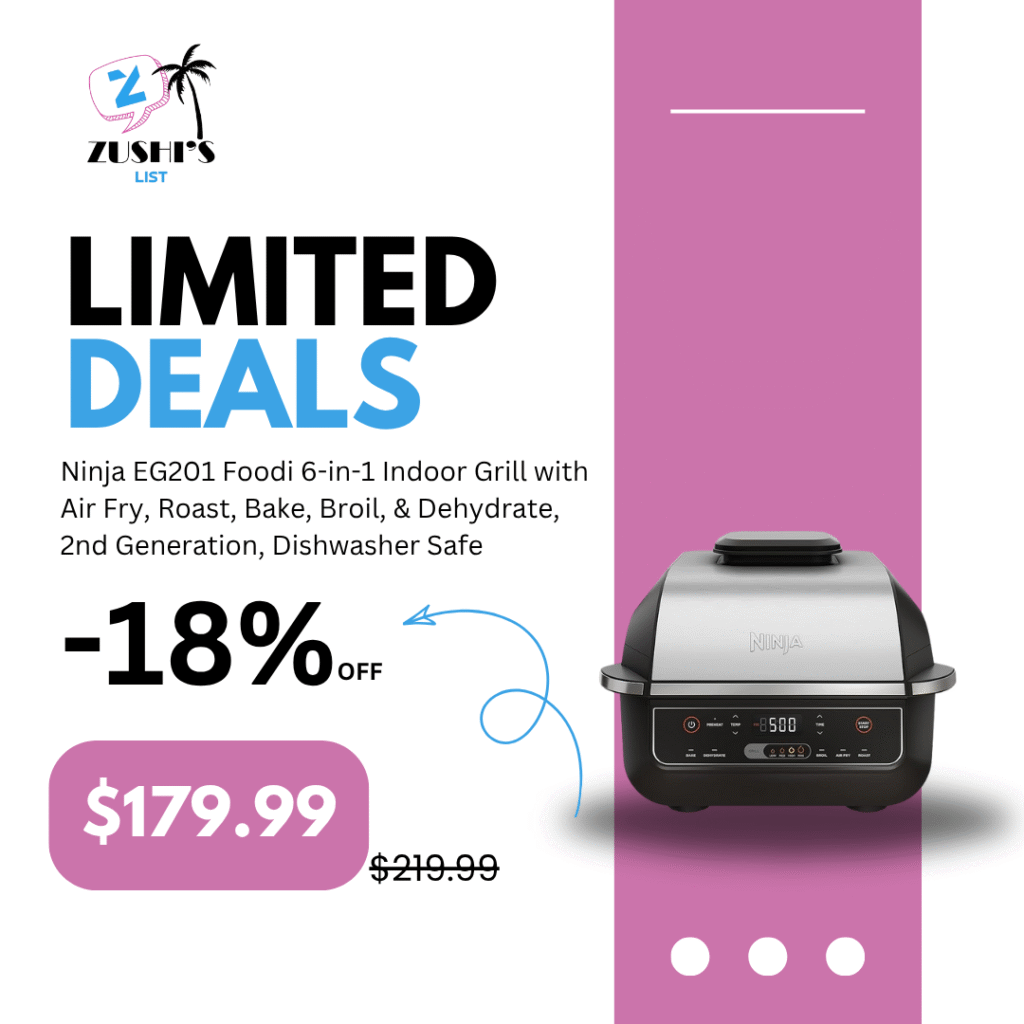 Ninja EG201 Foodi 6-in-1 Indoor Grill with Air Fry, Roast, Bake, Broil, & Dehydrate, 2nd Generation, Dishwasher Safe, Black/Silver