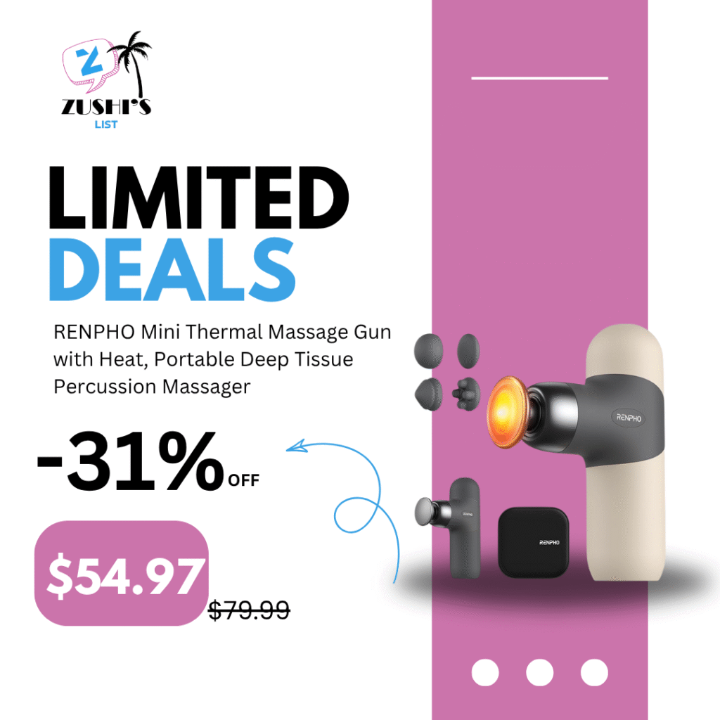RENPHO Mini Thermal Massage Gun with Heat, Portable Deep Tissue Percussion Massager, Color Silicone Sleeves Travel Size with Carry Case, Grey