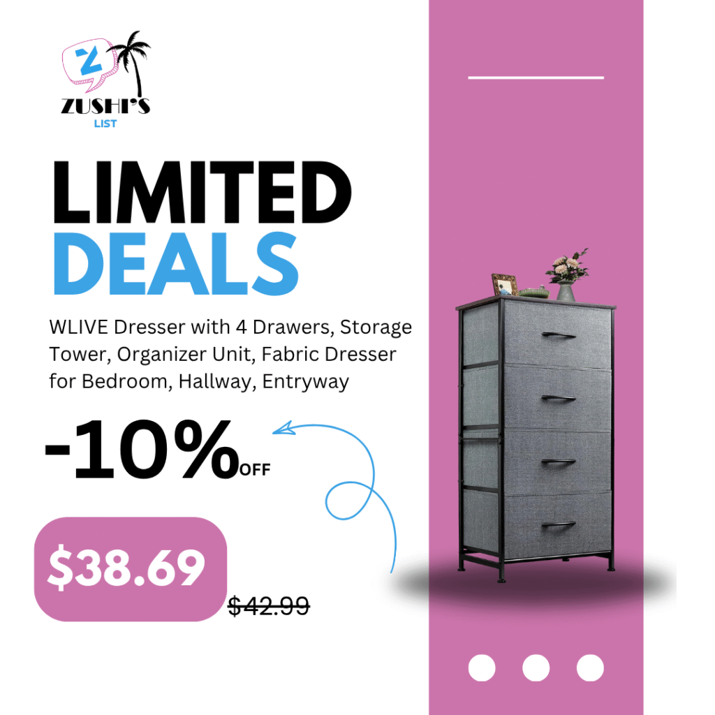 WLIVE Dresser with 4 Drawers, Storage Tower, Organizer Unit, Fabric Dresser for Bedroom, Hallway, Entryway, Closets, Sturdy Steel Frame, Wood Top, Easy Pull Handle, Dark Grey