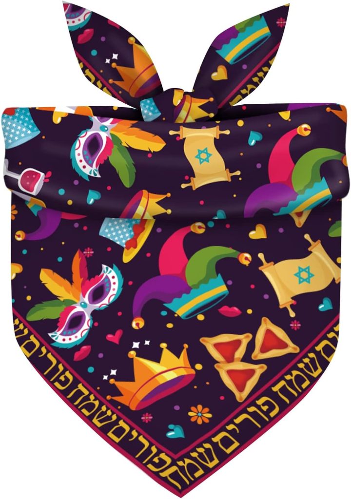 Happy Purim Dog Bandana Jewish Carnival Festival Holiday Decor for Small Medium Dogs Cats Pets Adjustable Triangle Scarf
