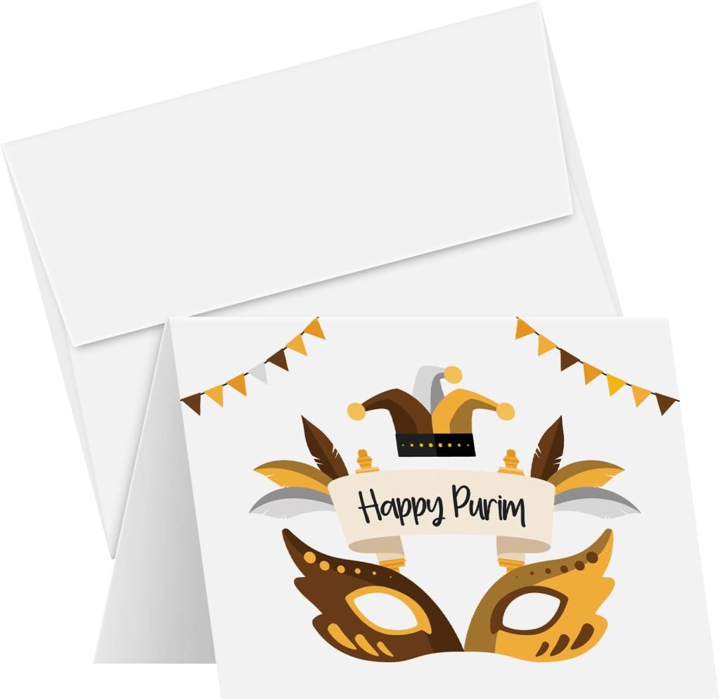 25 Happy Purim Greeting Cards, Traditional Purim Symbols Mask, Scroll, Religious Jewish Holiday Greetings Invitations, Thank You’s, Announcements, Gifts and Presents – Envelopes Included – 4.25 x 5.5”