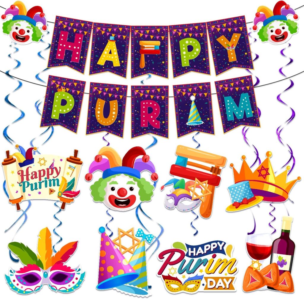 Purim Decorations, Happy Purim Day Banner Hanging Swirls, Purim Party Supplies Banner Purim Decorations Streamers Happy Purim Banner, Purim Hanging Decorations Purim Decor Outdoor for Home Office