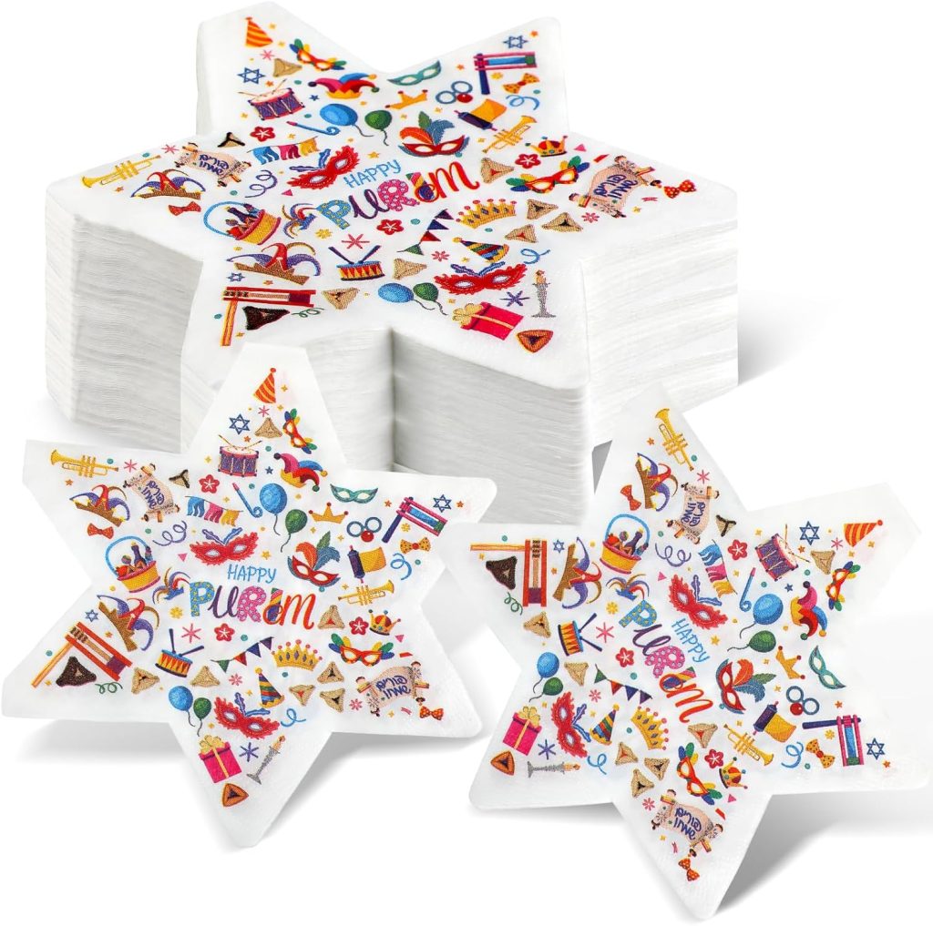 60 Pcs Purim Style Paper Napkins, Bulk Disposable Cocktail Paper Napkins Dinner Table Disposable Guest Napkin for Pink Purple Butterfly Breast Cancer Party Supplies