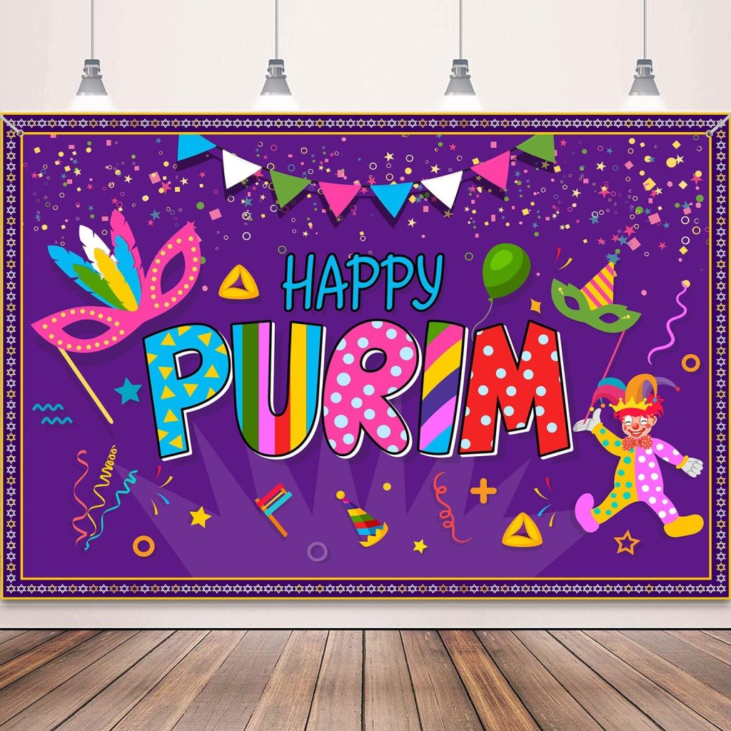 Purim Decorations Happy Purim Banner, Backdrop for Photography 5×3Ft Jewish Purim Party Background Decorations Carnival Banner for Purim Day