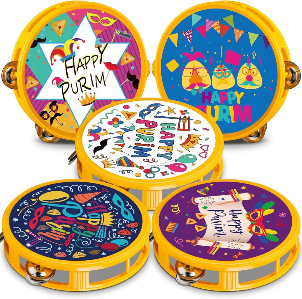 20 Pcs Happy Purim Tambourine Noisemaker, Purim Percussion Musical Instruments Festivities Begin with Noise Maker for Happy Purim Day Party Birthday Supplies
