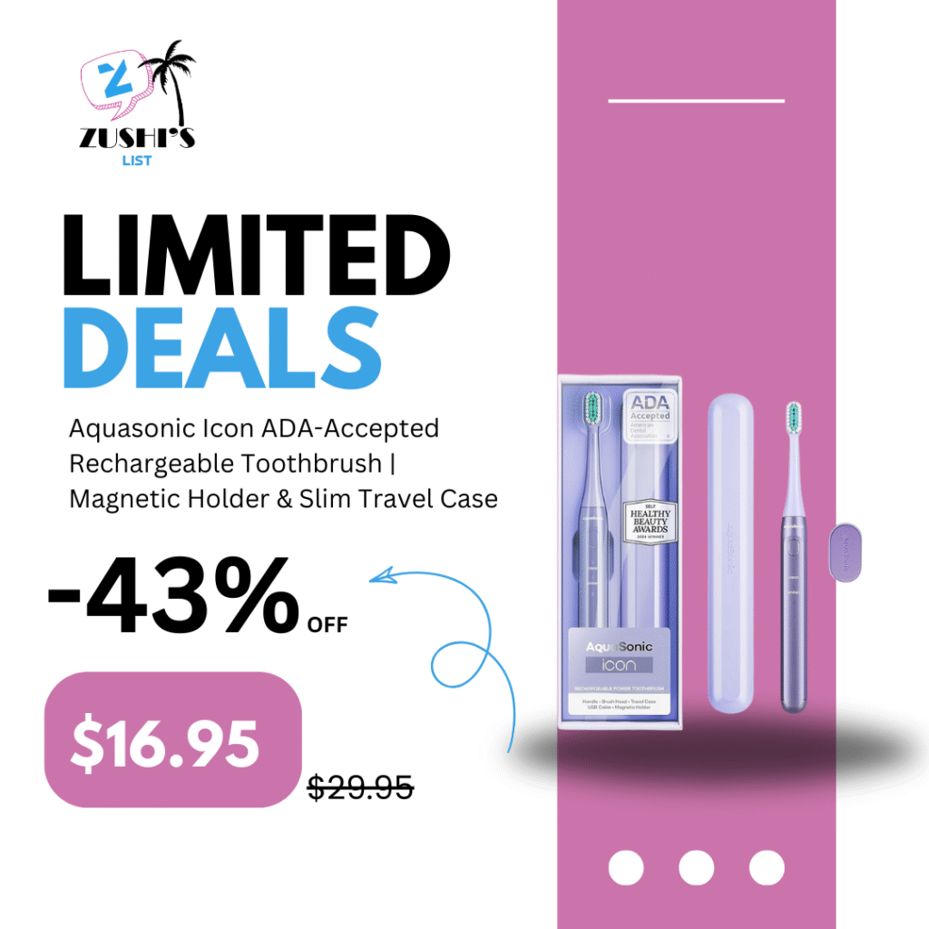 Aquasonic Icon ADA-Accepted Rechargeable Toothbrush | Magnetic Holder & Slim Travel Case | 2 Brushing Modes & Smart Timers | Gentle Micro-Vibrations (Lilac)