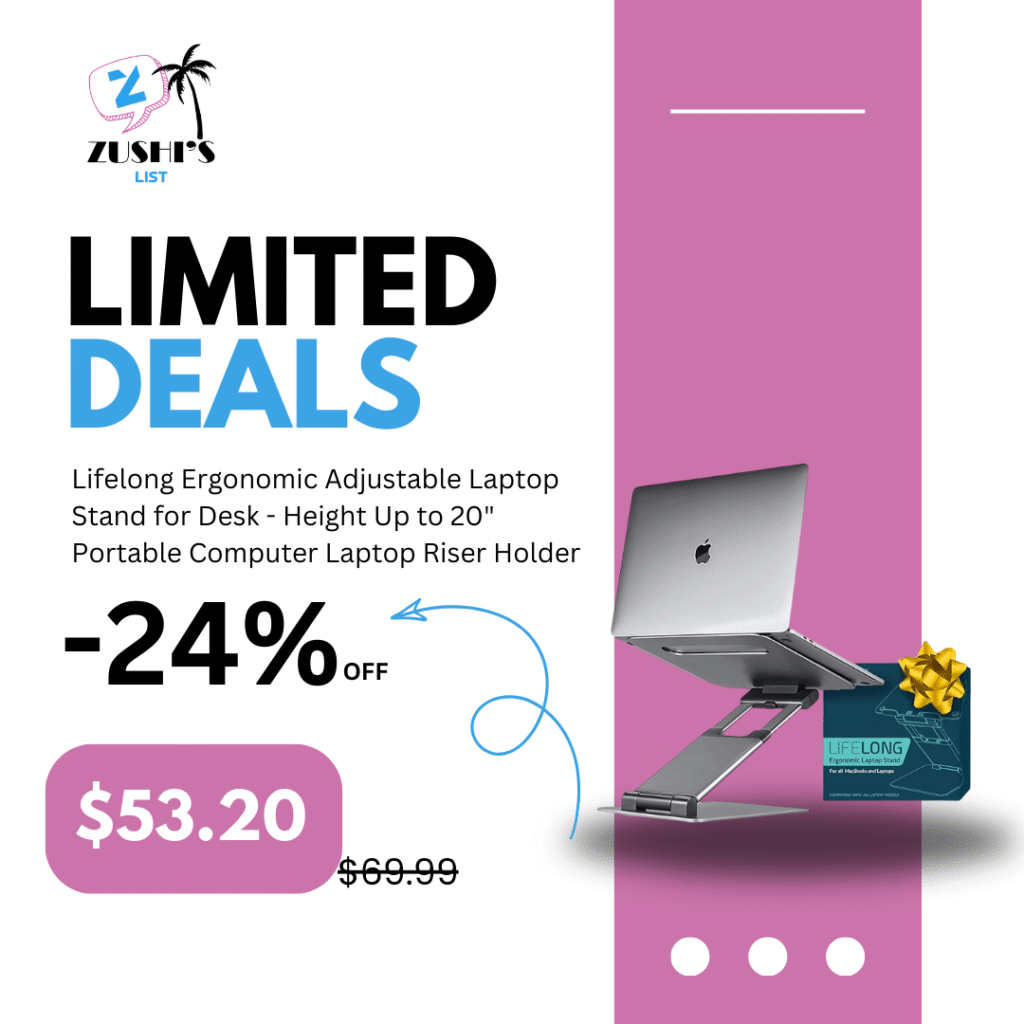 Lifelong Ergonomic Adjustable Laptop Stand for Desk – Height Up to 20″ Portable Computer Laptop Riser Holder, Fits All MacBook Air & 10 15 17 Inches Laptops, Back to School Gift for Men & Women