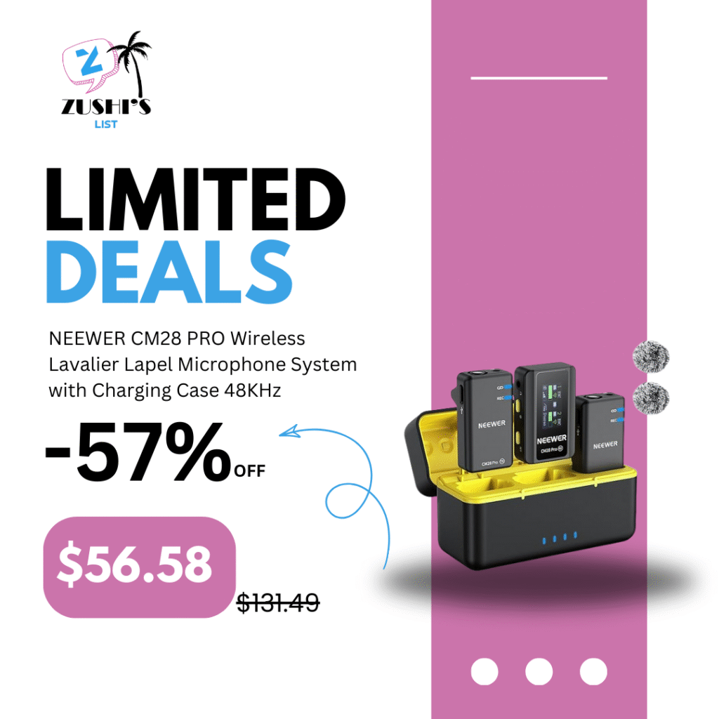 NEEWER CM28 PRO Wireless Lavalier Lapel Microphone System with Charging Case 48KHz 16 Bit Uncompressed Audio Noise Canceling 4GB Storage 9Hrs Recording Compatible with iPhone iPad Android Camera PC