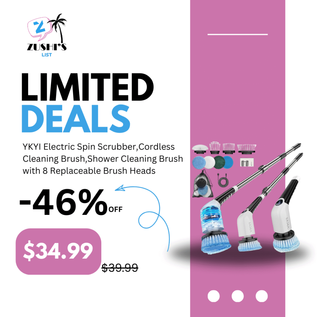 YKYI Electric Spin Scrubber,Cordless Cleaning Brush,Shower Cleaning Brush with 8 Replaceable Brush Heads, Power Scrubber 3 Adjustable Speeds,Adjustable & Detachable Long Handle,Voice Broadcast