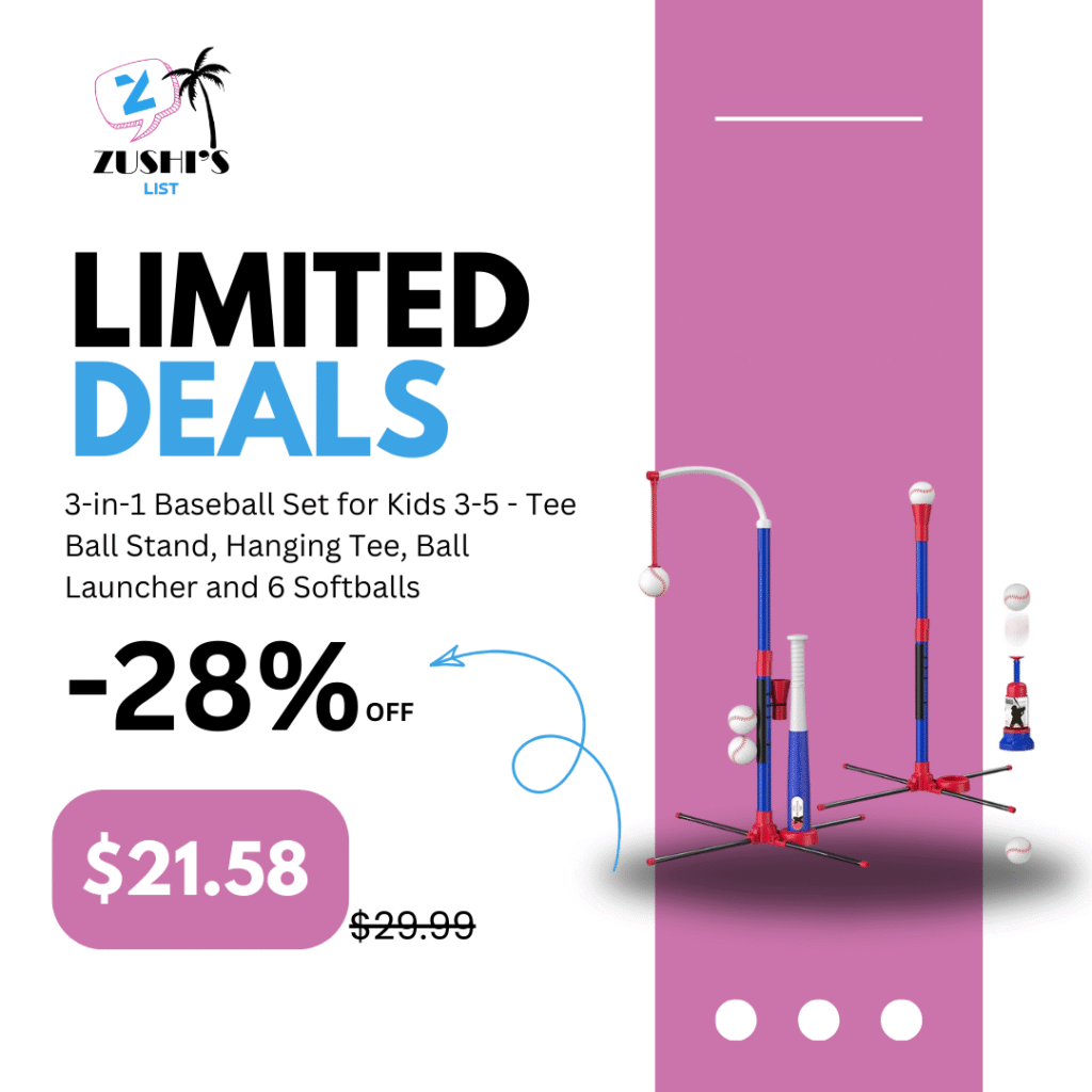 3-in-1 Baseball Set for Kids 3-5 – Tee Ball Stand, Hanging Tee, Ball Launcher and 6 Softballs – Adjustable Height, Indoor/Outdoor Sport Gifts for Boys Girls, Blue
