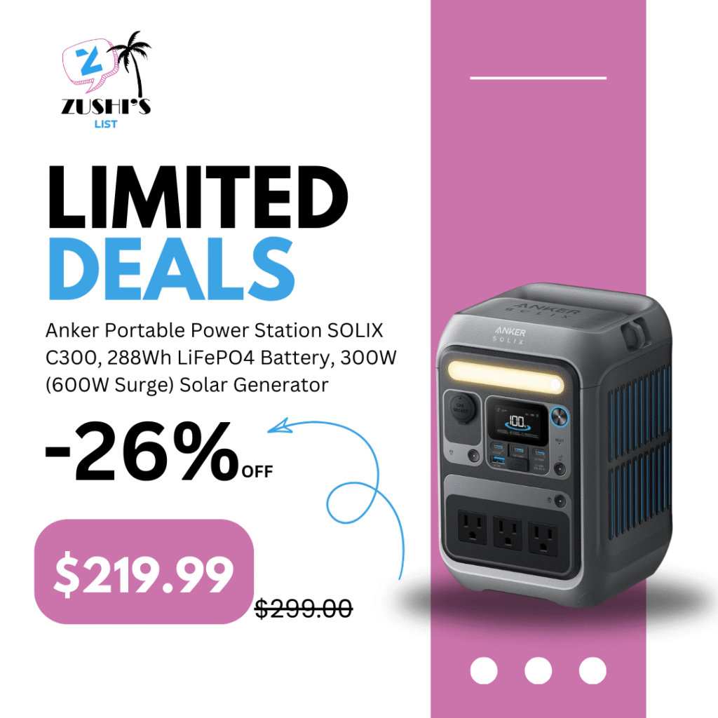 Anker Portable Power Station SOLIX C300, 288Wh LiFePO4 Battery, 300W (600W Surge) Solar Generator, 140W Two-Way Fast Charging, for Outdoor Camping, Traveling, and Emergencies (Solar Panel Optional)