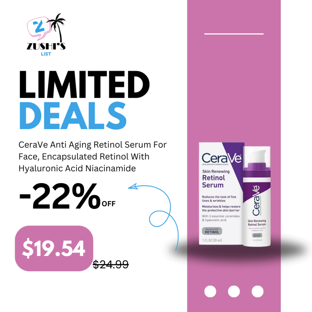 CeraVe Anti Aging Retinol Serum For Face, Encapsulated Retinol With Hyaluronic Acid, Niacinamide & Ceramides, Smooths Wrinkles & Fine Lines, Gentle Skin Brightening Serum, Fragrance Free, 1 Oz