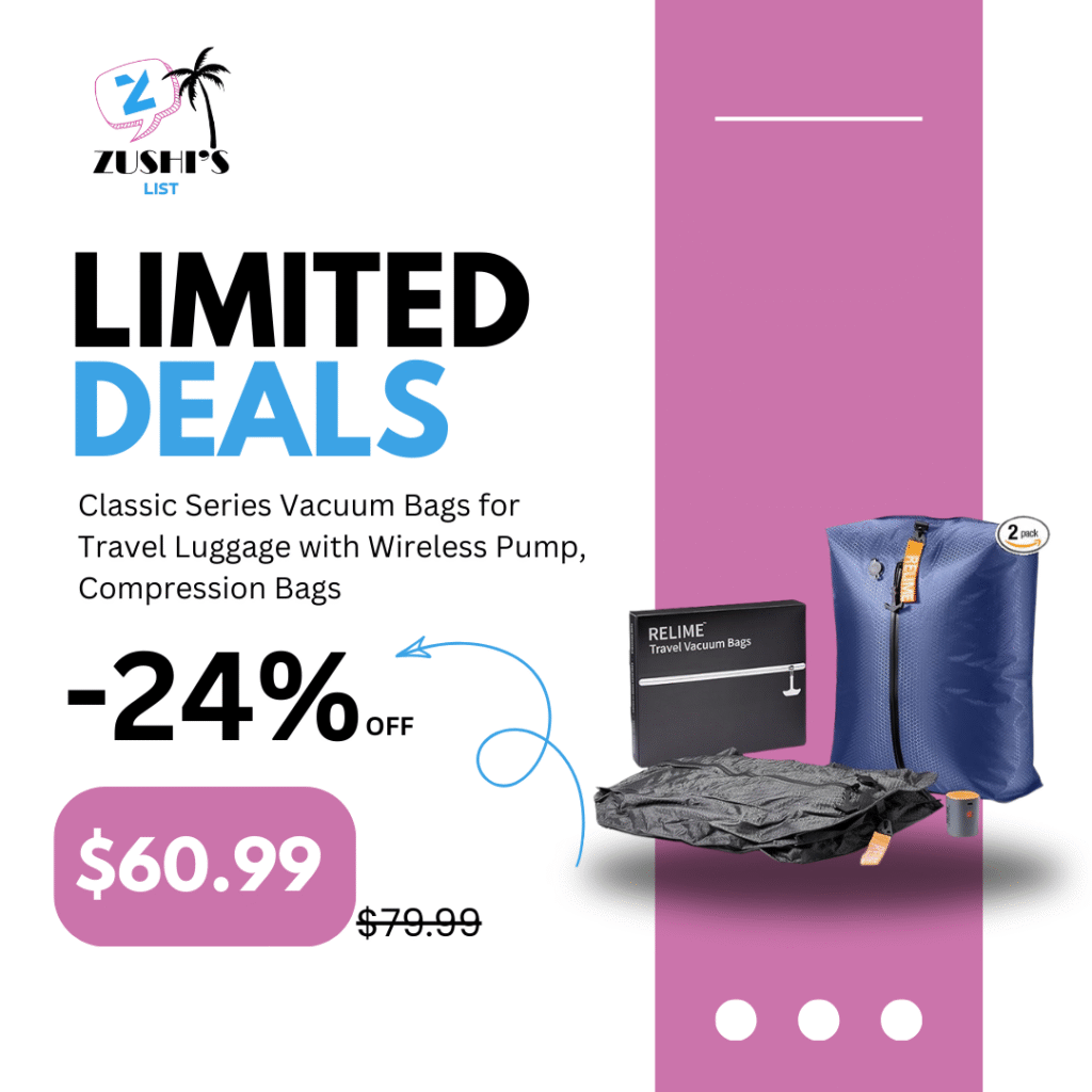 Classic Series Vacuum Bags for Travel Luggage with Wireless Pump, Compression Bags for Carry On Suitcases and Backpack, Vacuum Seal Packing cube for Cloth Packing (2PC + PUMP Gray & Blue)
