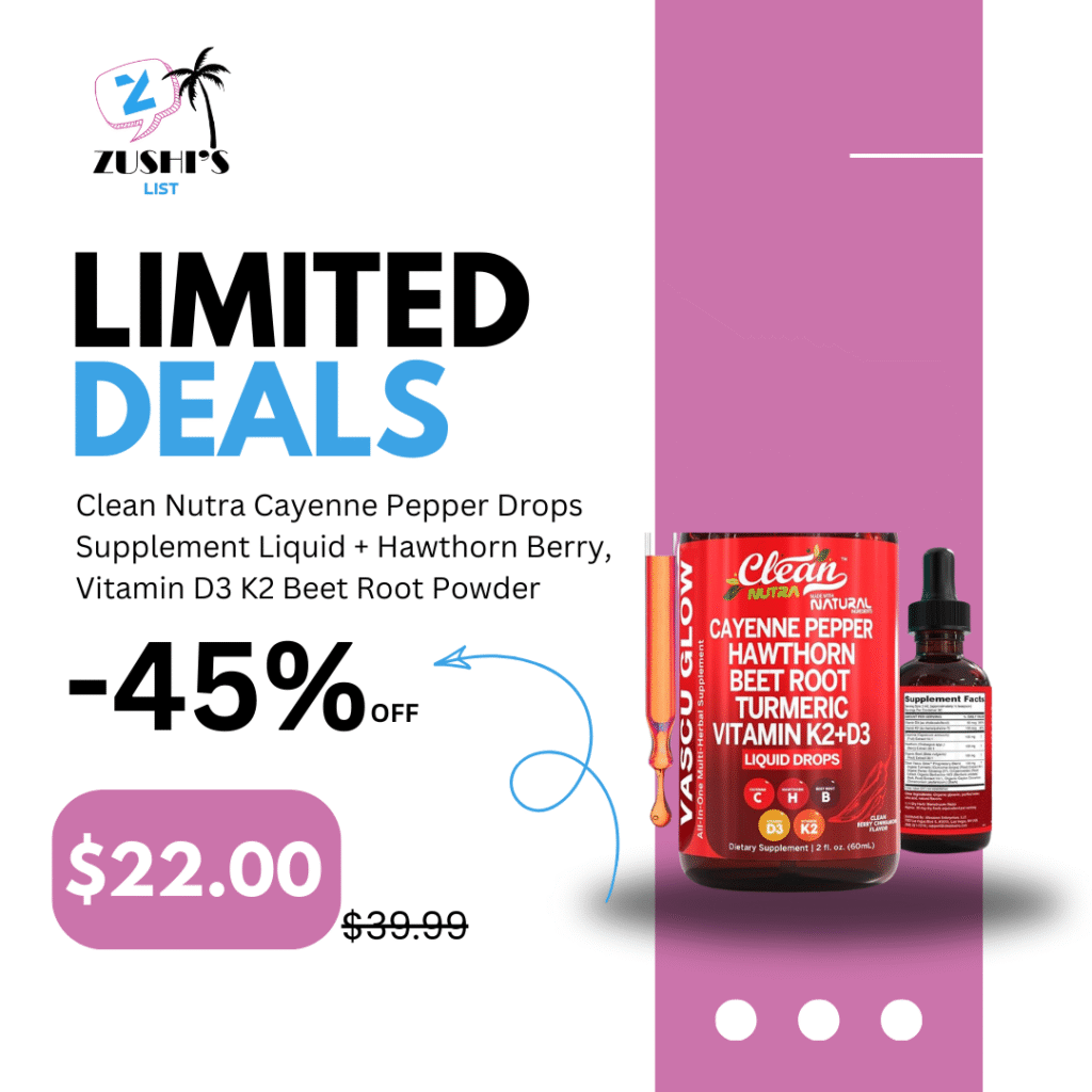 Clean Nutra Cayenne Pepper Drops Supplement Liquid + Hawthorn Berry, Vitamin D3 K2 Beet Root Powder, Ceylon Cinnamon, Turmeric Curcumin, Organic Panax Ginseng, Berberine Extract 1 Pack