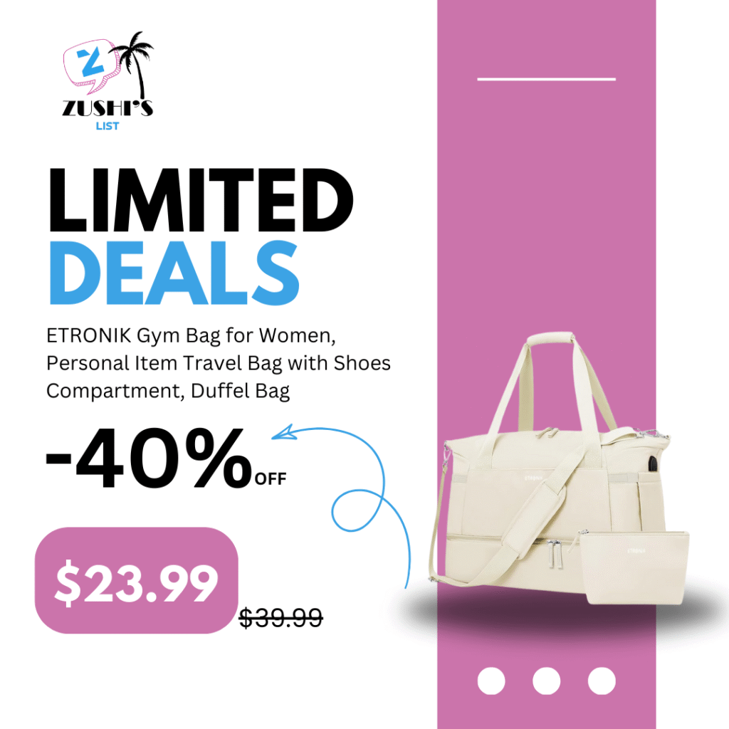 ETRONIK Gym Bag for Women, Personal Item Travel Bag with Shoes Compartment, Weekender Overnight Duffel Bag with Wet Pocket & USB Charging Port, Carry On Bag for Women, Travel, Gym, Weekend (Beige)