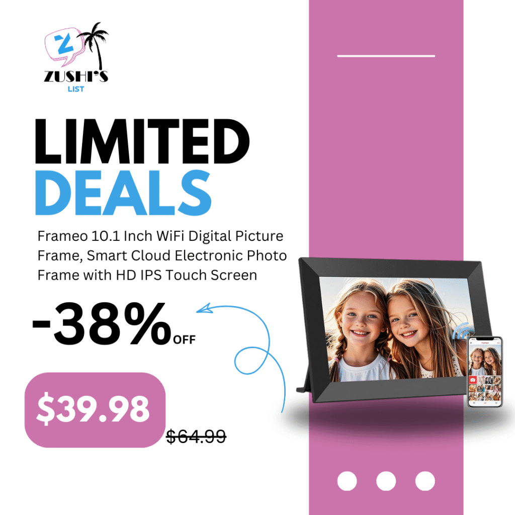 Frameo 10.1 Inch WiFi Digital Picture Frame, Smart Cloud Electronic Photo Frame with HD IPS Touch Screen Slideshow 32GB Memory Auto-Rotate Wall Mount, Share Photos/Videos from Phone by Frameo App