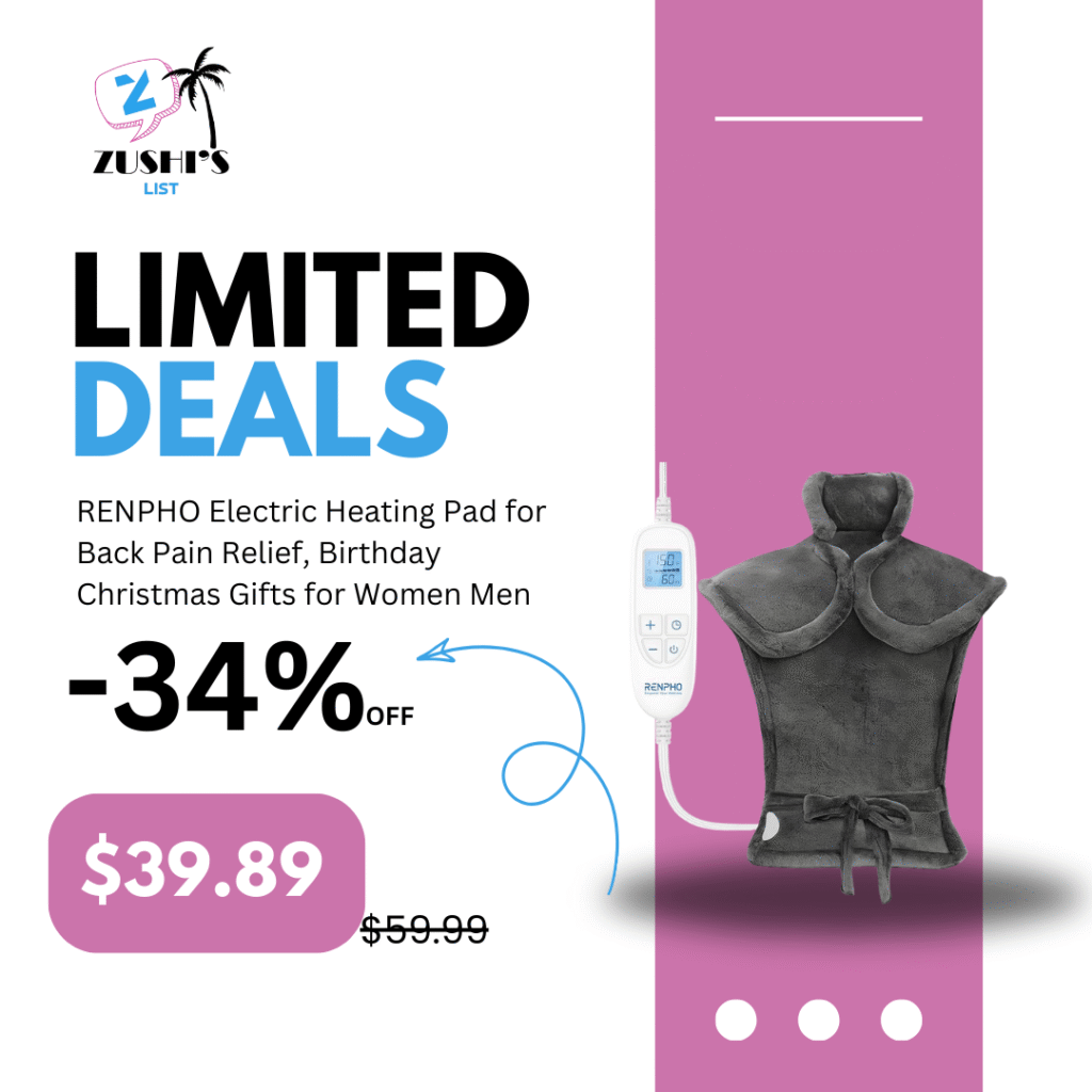RENPHO Electric Heating Pad for Back Pain Relief, Birthday Christmas Gifts for Women Men Mom Dad Elderly, FSA Eligible Items Only List, Large Heat Pad for Neck Shoulders, 24″x33″, ETL Certified, Gray