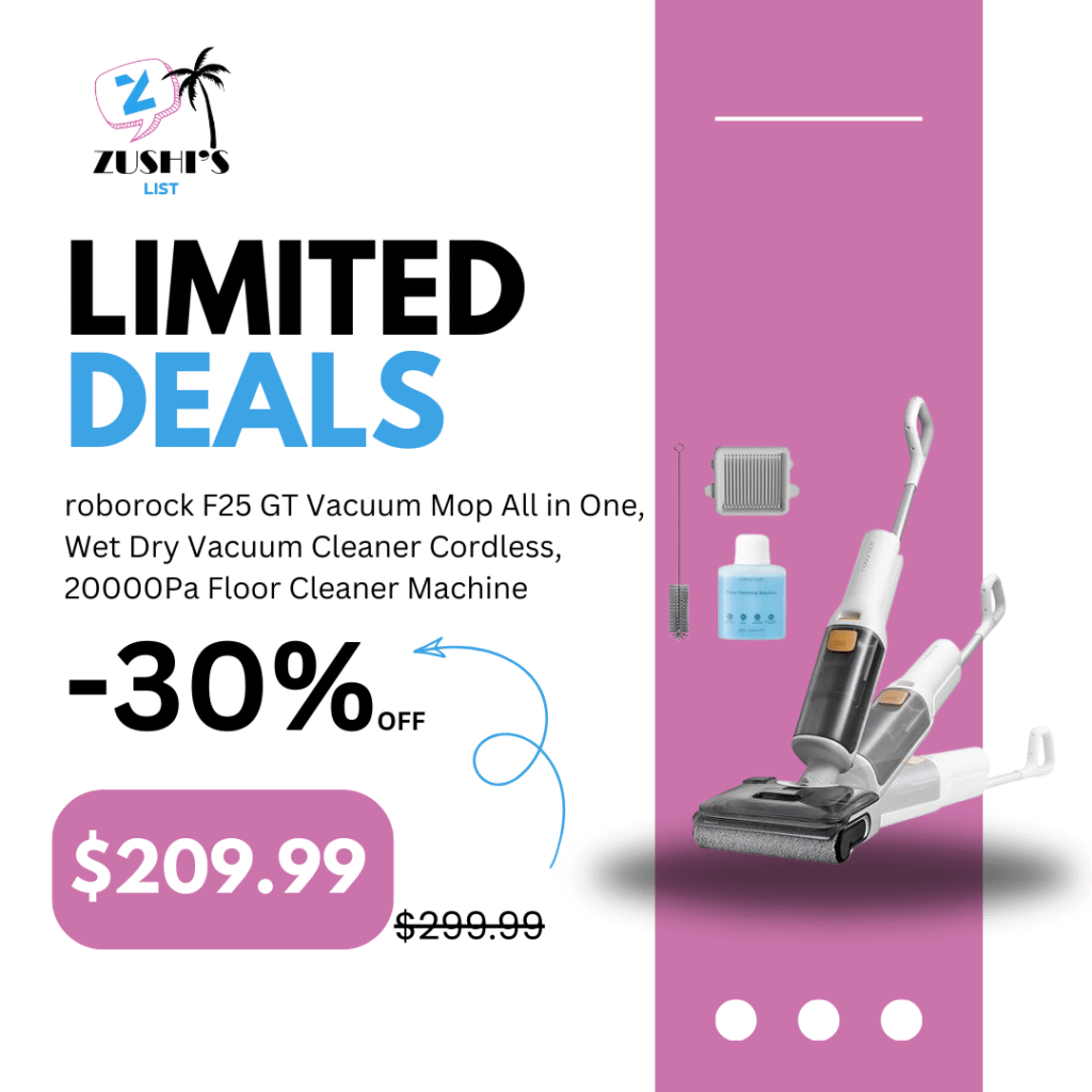 roborock F25 GT Vacuum Mop All in One, Wet Dry Vacuum Cleaner Cordless, 20000Pa Floor Cleaner Machine for Tile Hardwood Wood Vinyl Floor, Edge to Edge Self Cleaning Electric Mop with 180° Lie-Flat