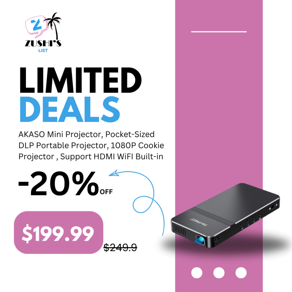 AKASO Mini Projector, Pocket-Sized DLP Portable Projector, 1080P Cookie Projector , Support HDMI WiFI Built-in Rechargeable Battery Stereo Speakers and Remote Control Movie Projector