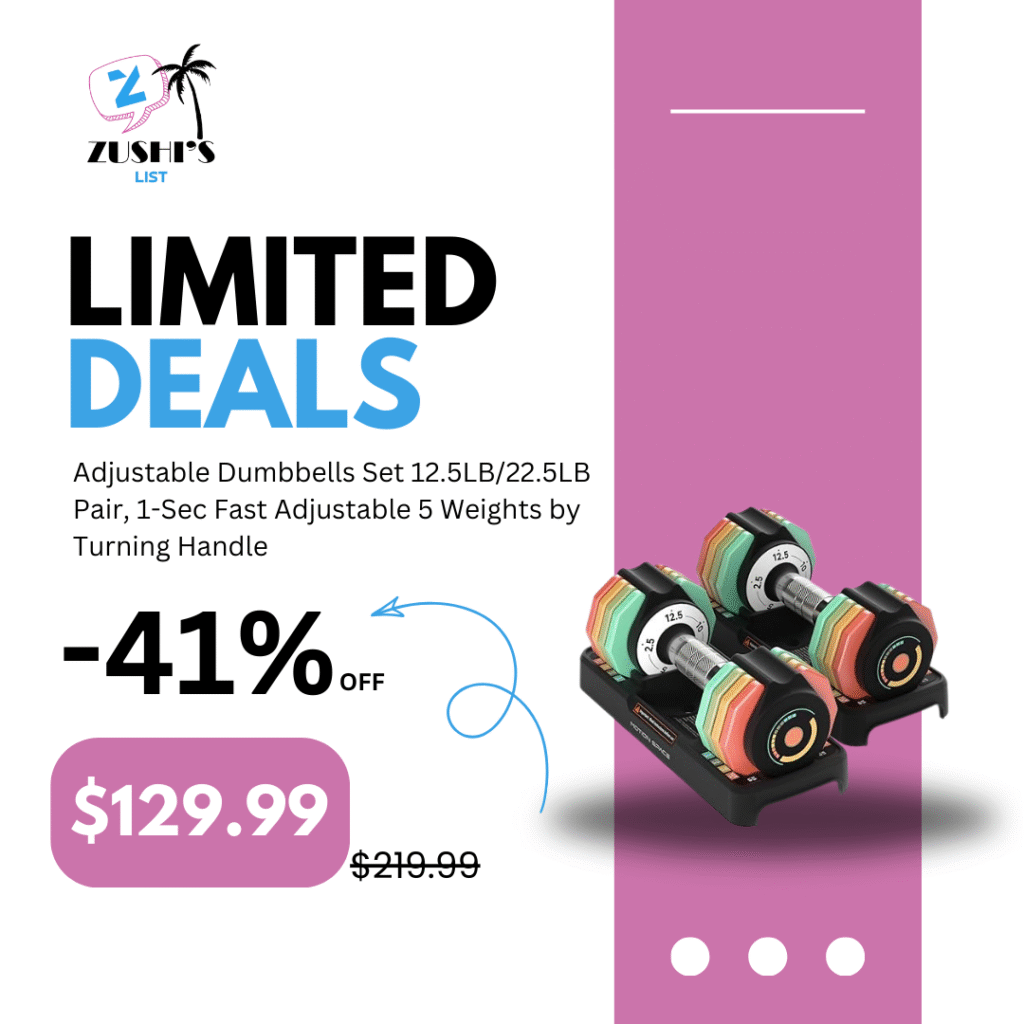 Adjustable Dumbbells Set 12.5LB/22.5LB Pair, 1-Sec Fast Adjustable 5 Weights by Turning Handle, Premium Comfort Non-slip Metal Dumbbells with Tray, Compact Size for Full Body Home Workout