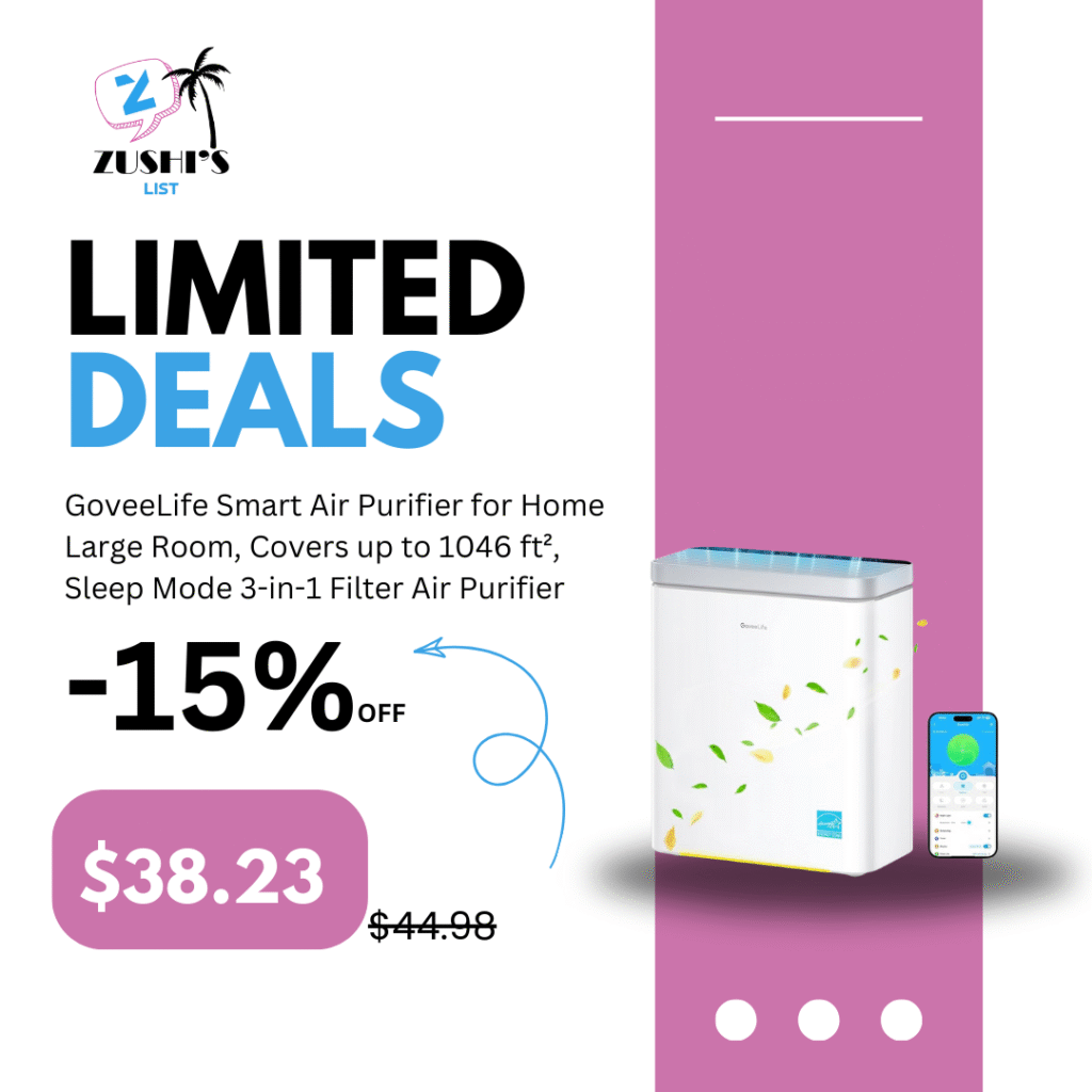 GoveeLife Smart Air Purifier for Home Large Room, Covers up to 1046 ft², Sleep Mode, 3-in-1 Filter Air Purifier with App Alexa Control for Pet Hair, Odors, Pollen and Smoke (no sensor)