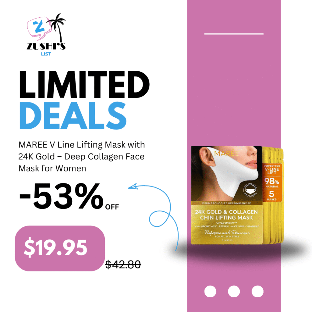 MAREE V Line Lifting Mask with 24K Gold – Deep Collagen Face Mask for Women – Jawline Shaper Mask with Retinol & Hyaluronic Acid – Neck Tightening & Firming – Double Chin Strap for Face Lift