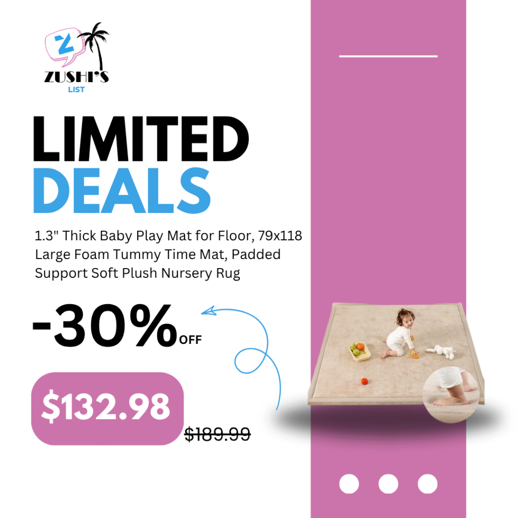 1.3″ Thick Baby Play Mat for Floor, 79×118 Large Foam Tummy Time Mat, Padded Support Soft Plush Nursery Rug for Infant Kids Toddler Crawling Kick Activity (Beige)
