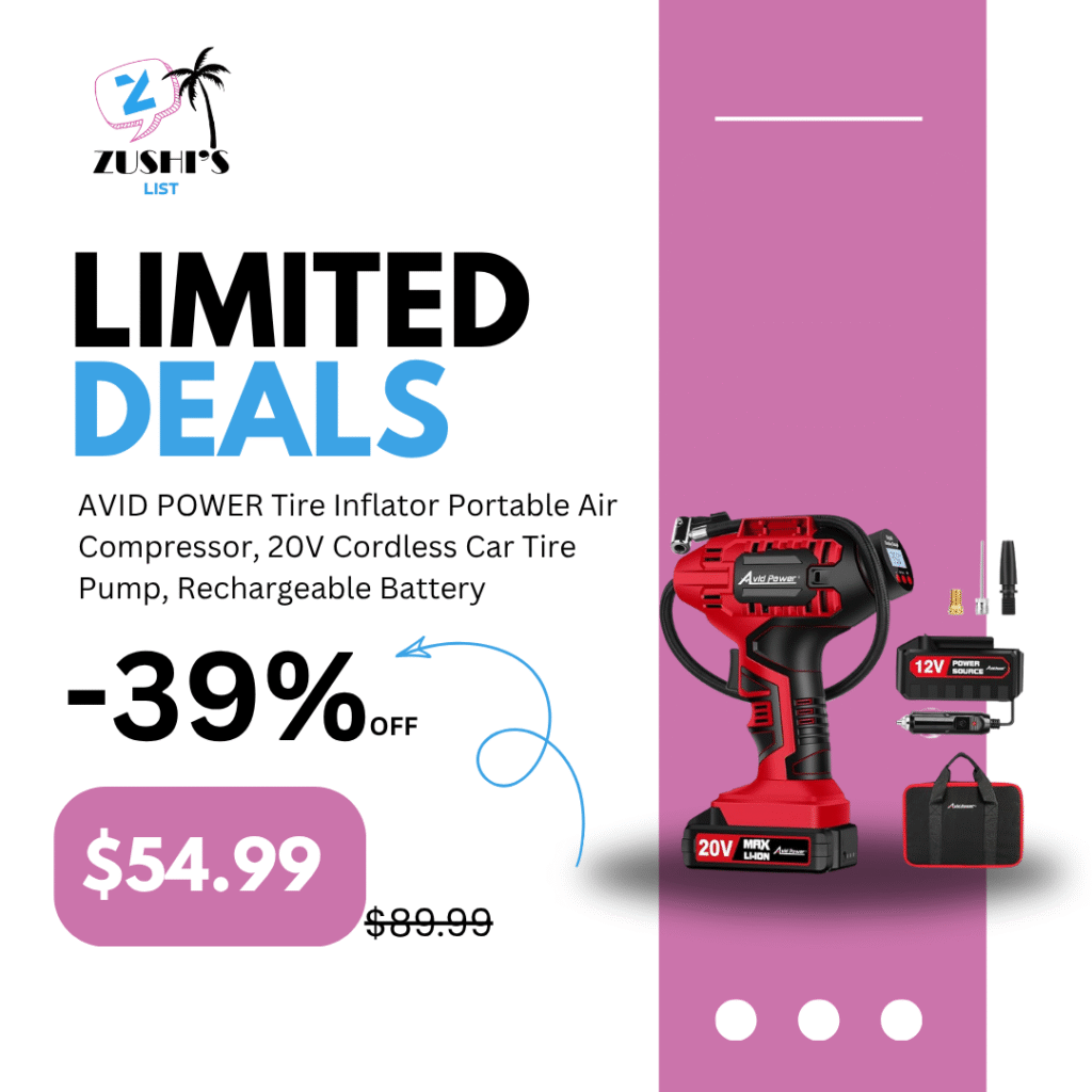 AVID POWER Tire Inflator Portable Air Compressor, 20V Cordless Car Tire Pump, Rechargeable Battery Powered Air Compressor w/12V DC Adapter, Digital Pressure Gauge