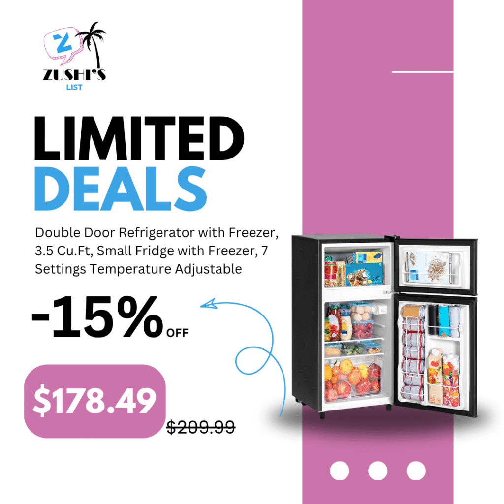 Double Door Refrigerator with Freezer, 3.5 Cu.Ft, Small Fridge with Freezer, 7 Settings Temperature Adjustable, Mini Refrigerator for Office and Apartment Bedroom Dorm(3.5 Cu.Ft, Black)