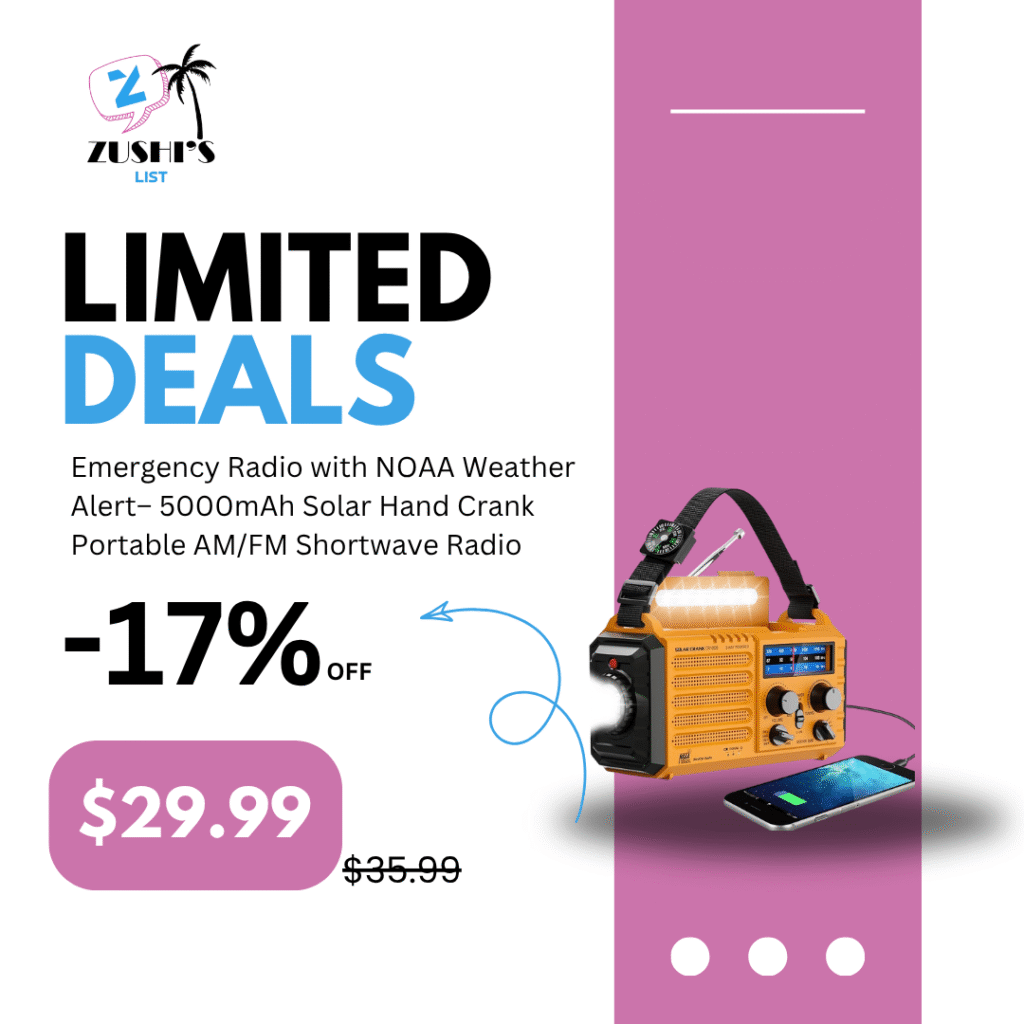 Emergency Radio with NOAA Weather Alert– 5000mAh Solar Hand Crank Portable AM/FM Shortwave Radio, Rechargeable Battery, USB Charger, Flashlight, SOS Alarm for Home Outdoor Hurricane Survival