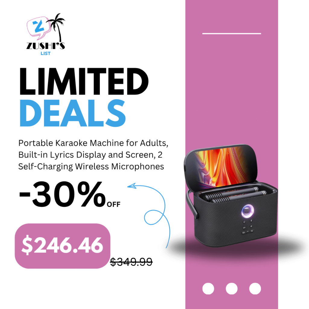 Portable Karaoke Machine for Adults, Built-in Lyrics Display and Screen, 2 Self-Charging Wireless Microphones, Karaoke App, 140W Speaker, Connects to TV for Home Party Birthday Outdoor Camping
